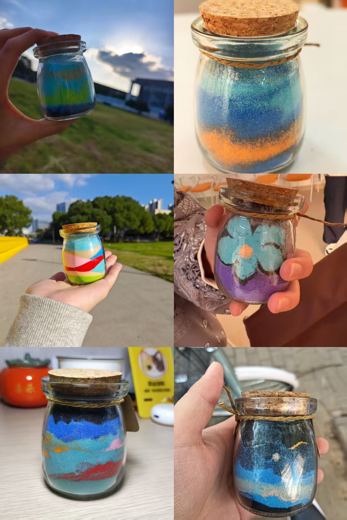 活动中,同学们以沙粒为载体将抽象情绪具象化,用不同颜色的细沙表达“平静思考”“热烈喜悦”“未来期待”等各种情绪,并通过调配沙粒,制作自己专属的“情绪小药瓶”。