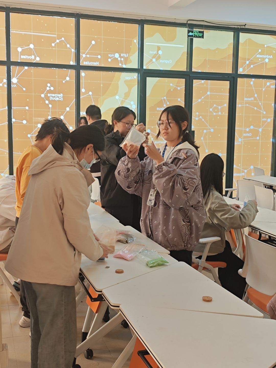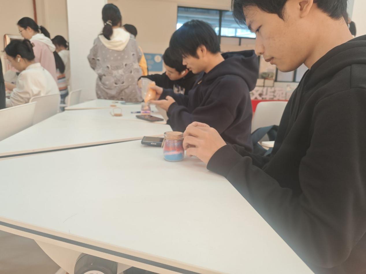 为帮助新生缓解学业和生活上的种种压力,提升情绪觉察与表达能力,工学院心理健康协会于10月22日下午在文华苑“一站式”社区活动室开展“绘砂为语,瓶纳心安”主题主题活动,吸引众多同学参与。